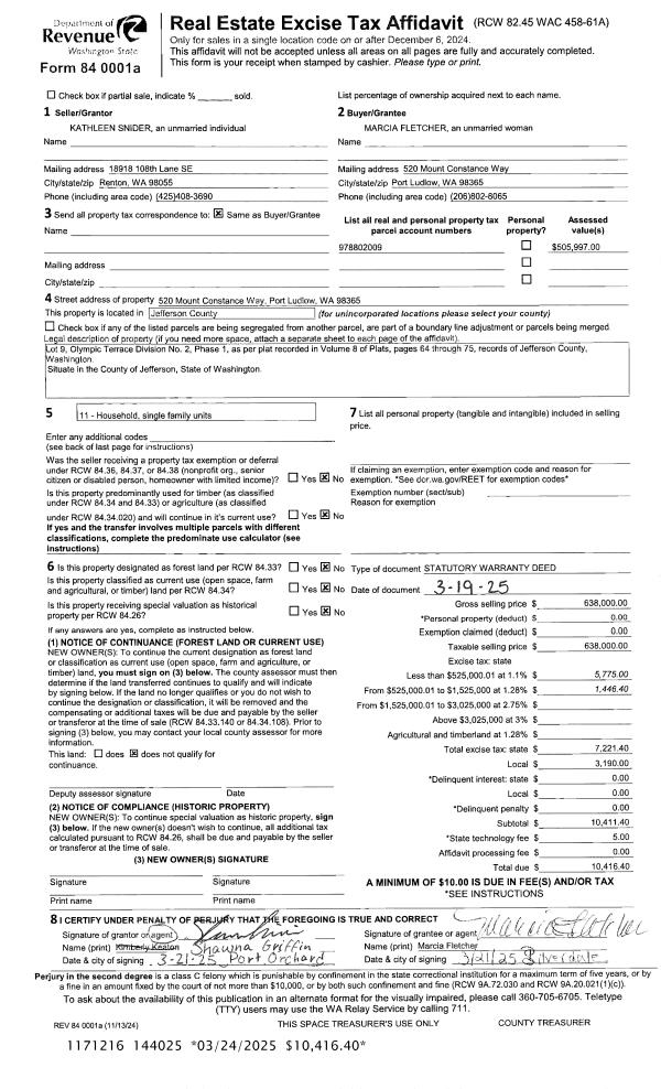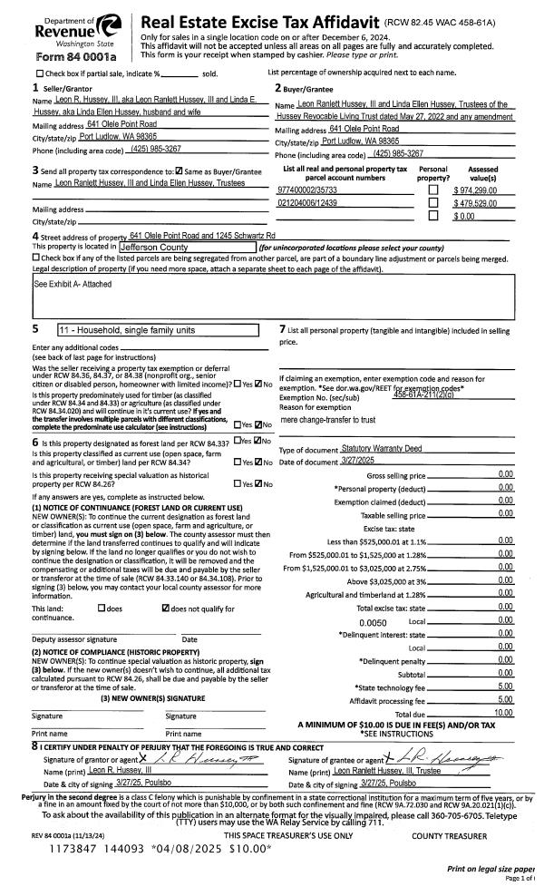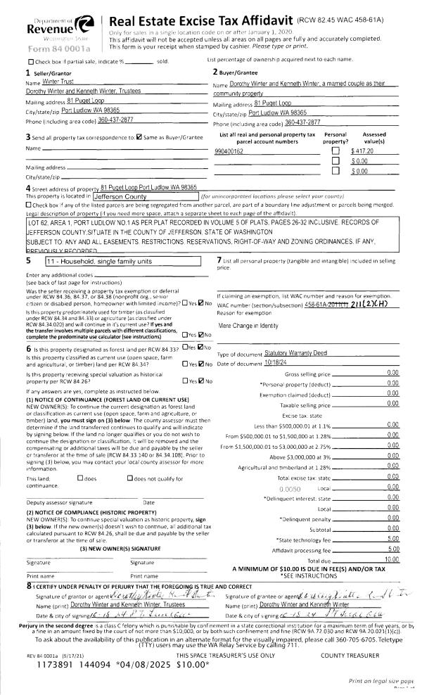 | Mailing Address: | REBECCA SUE WATSON 2305 IVY ST PORT TOWNSEND, WA 98368-6825 | % Ownership: | 100.0000000000% |