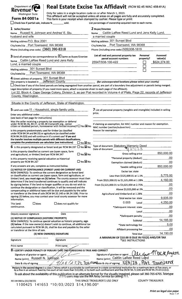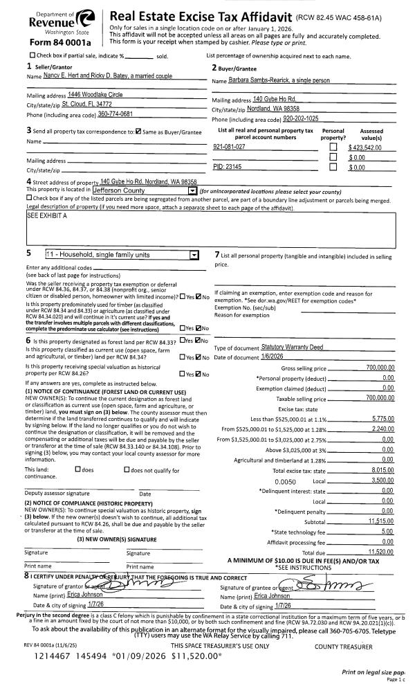 | Mailing Address: | 1611 HASTINGS AVE W PORT TOWNSEND, WA 98368-9213 | % Ownership: | 100.0000000000% |
