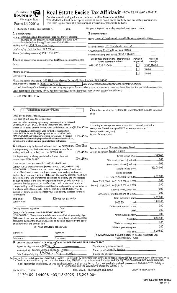 | 1 | 05/08/2009 | SWD | Statutory Warranty Deed | HANSEN ESTATE, DOLORES H | DEUTSCH, EILEEN | | | $464,000.00 | 112874 | 0 |