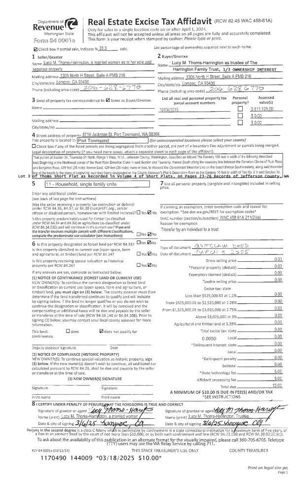 | Mailing Address: | 2755 30TH ST PORT TOWNSEND, WA 98368-4730 | % Ownership: | 100.0000000000% |
