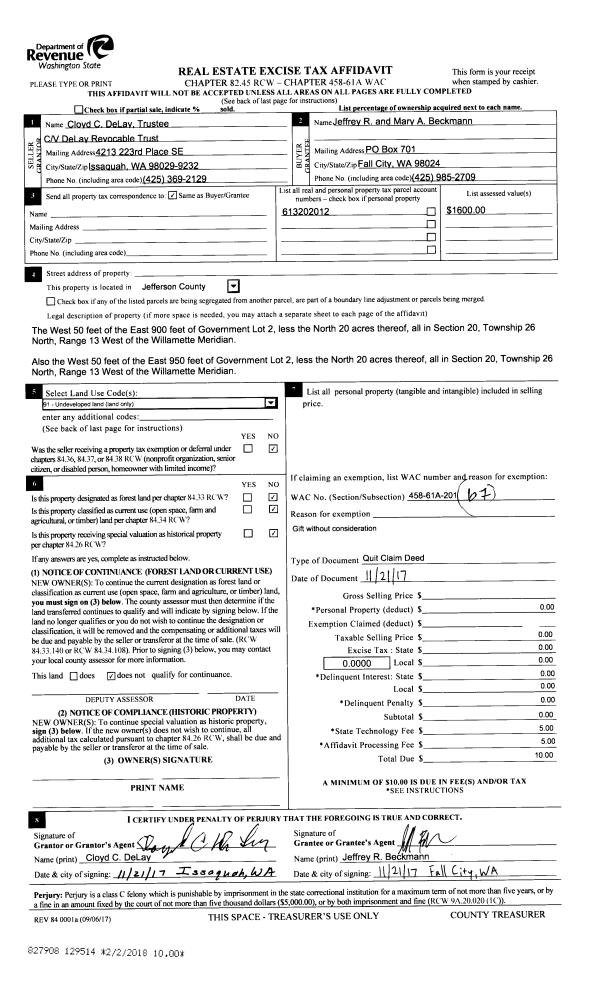 | Property ID: | 10302 | Abbreviated Legal Description: | S5 T30 R1W TAX 16 WITH EASE LESS CO RD R/W |