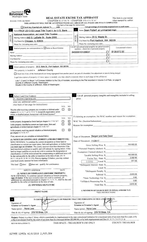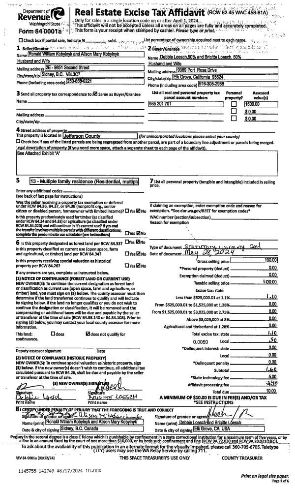| Mailing Address: | 1042 CASS ST PORT TOWNSEND, WA 98368-6305 | % Ownership: | 100.0000000000% |