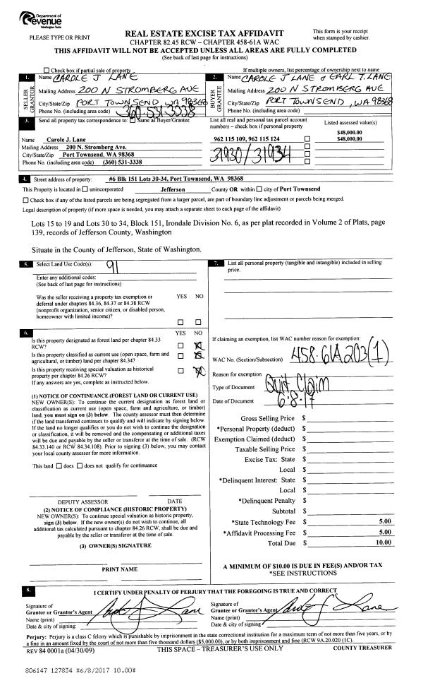 | Mailing Address: | 640 E MIDDLEPOINT RD PORT TOWNSEND, WA 98368-9249 | % Ownership: | 100.0000000000% |
