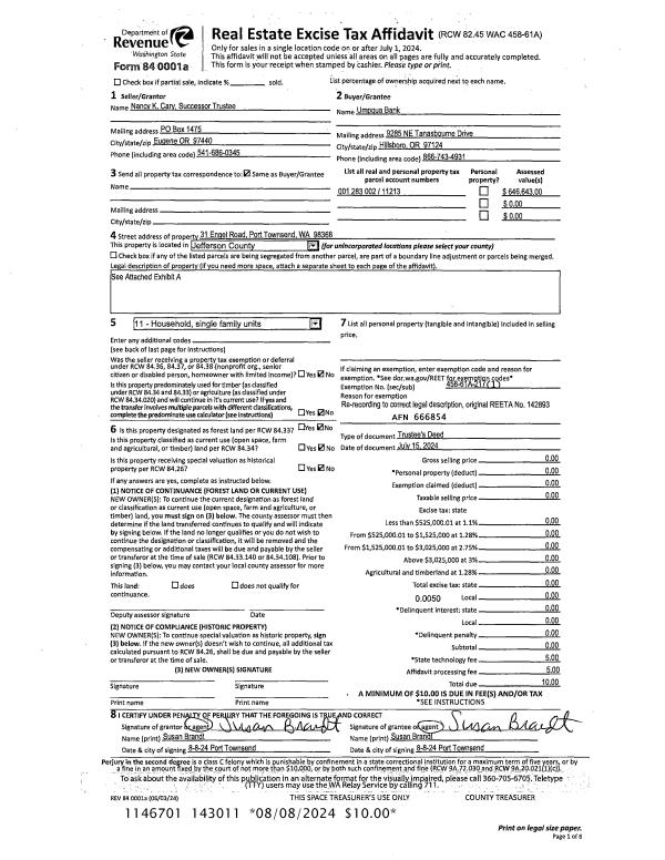 | Mailing Address: | 2034 VICTORIA AVE PORT TOWNSEND, WA 98368 | % Ownership: | 100.0000000000% |