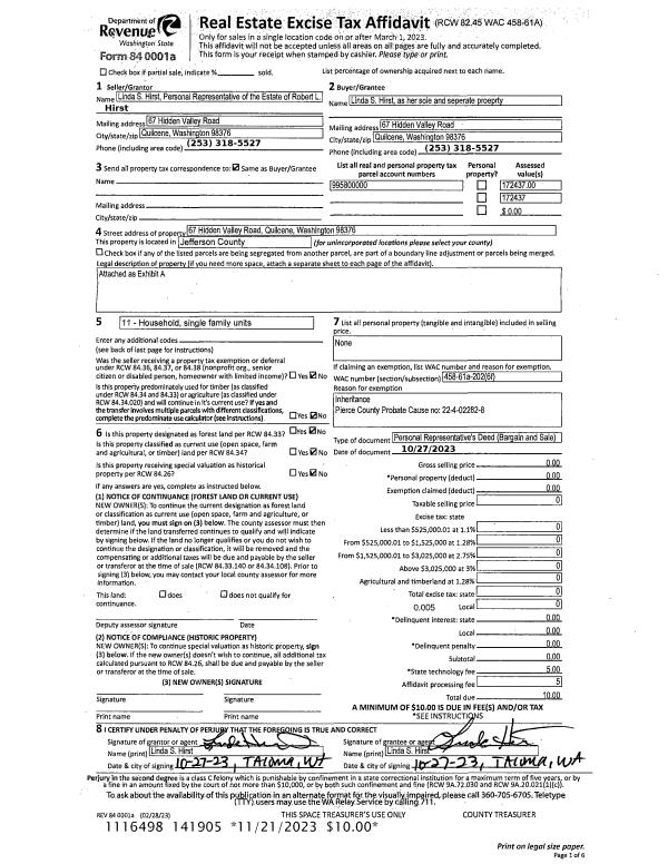 | Mailing Address: | 2671 HASTINGS AVE W PORT TOWNSEND, WA 98368-9218 | % Ownership: | 100.0000000000% |