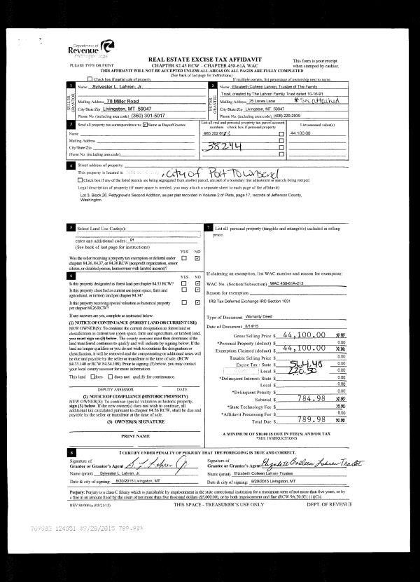 | Mailing Address: | 385 HAADA LAAS RD PORT TOWNSEND, WA 98368-9238 | % Ownership: | 100.0000000000% |