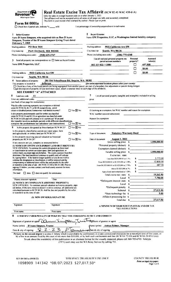 | Mailing Address: | 522 MCMINN RD PORT TOWNSEND, WA 98368 | % Ownership: | 100.0000000000% |