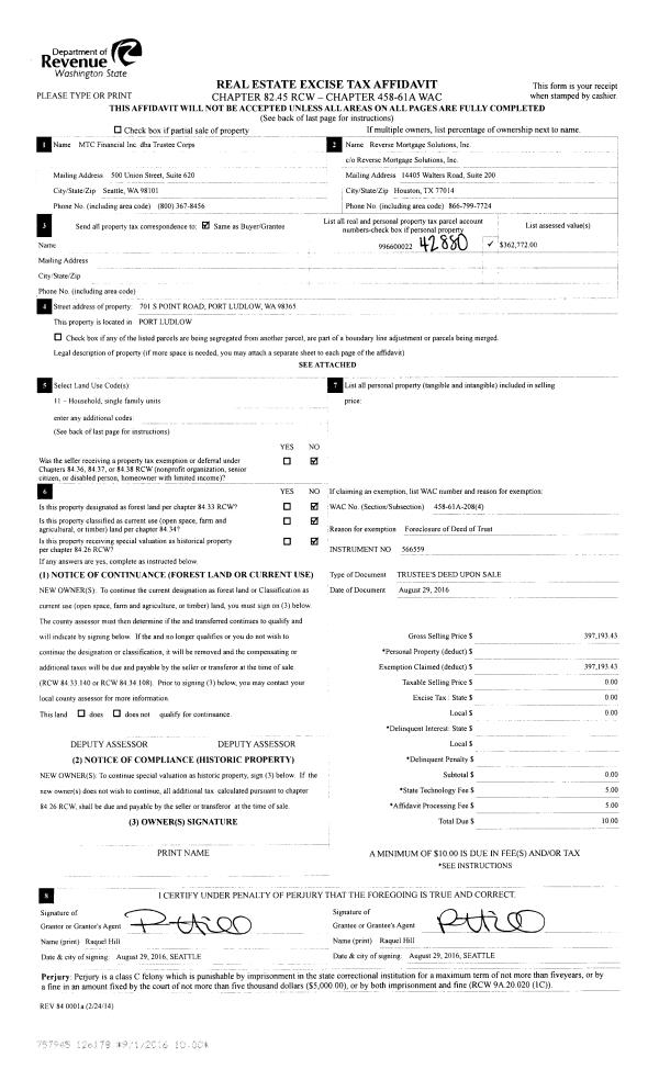 | Mailing Address: | 500 ARABIAN LN PORT TOWNSEND, WA 98368-9614 | % Ownership: | 100.0000000000% |