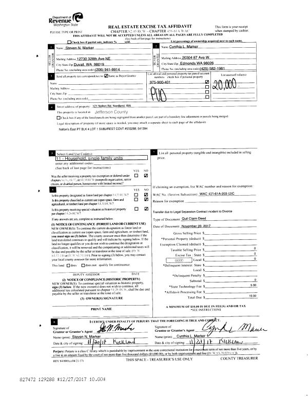 | Mailing Address: | GARY L JONDLE TRUSTEE MARY LOU JONDLE TRUSTEE 411 ARABIAN LN PORT TOWNSEND, WA 98368 | % Ownership: | 100.0000000000% |