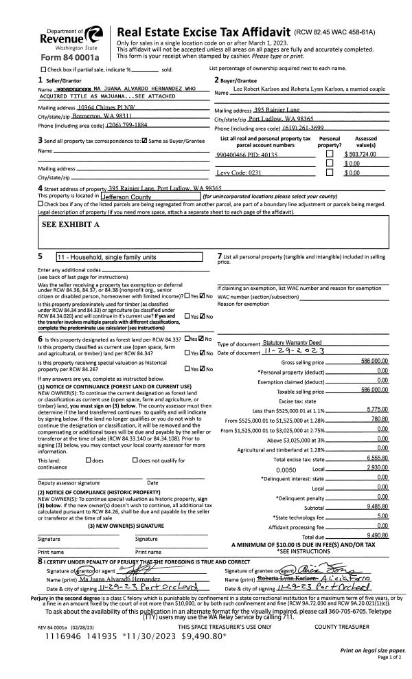 | 1 | 11/19/2020 | SWD | Statutory Warranty Deed | DAHR JAMAIL | JOORI JUN & LAUREN WILSON | | | $115,000.00 | 135621 | |