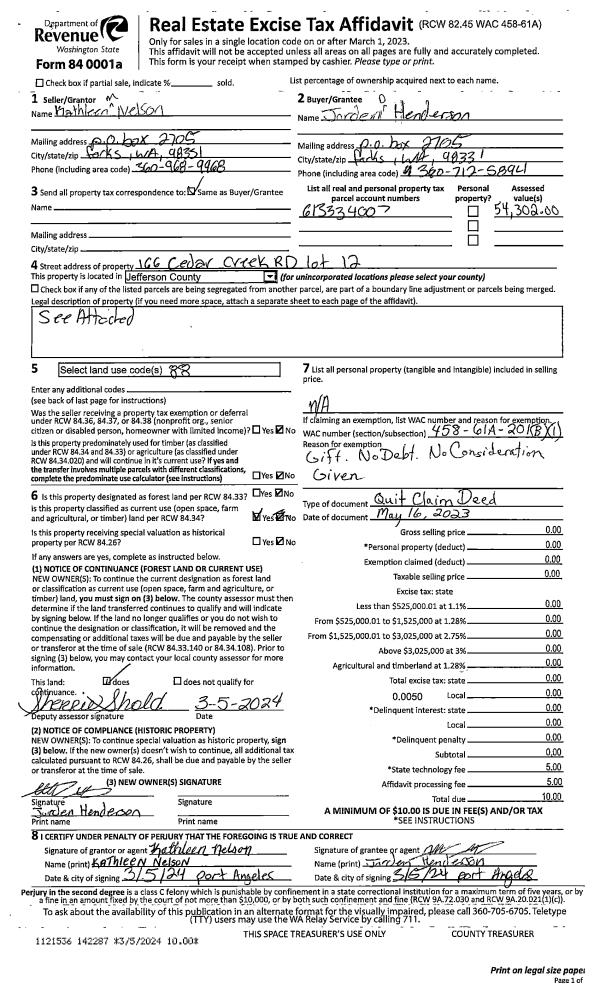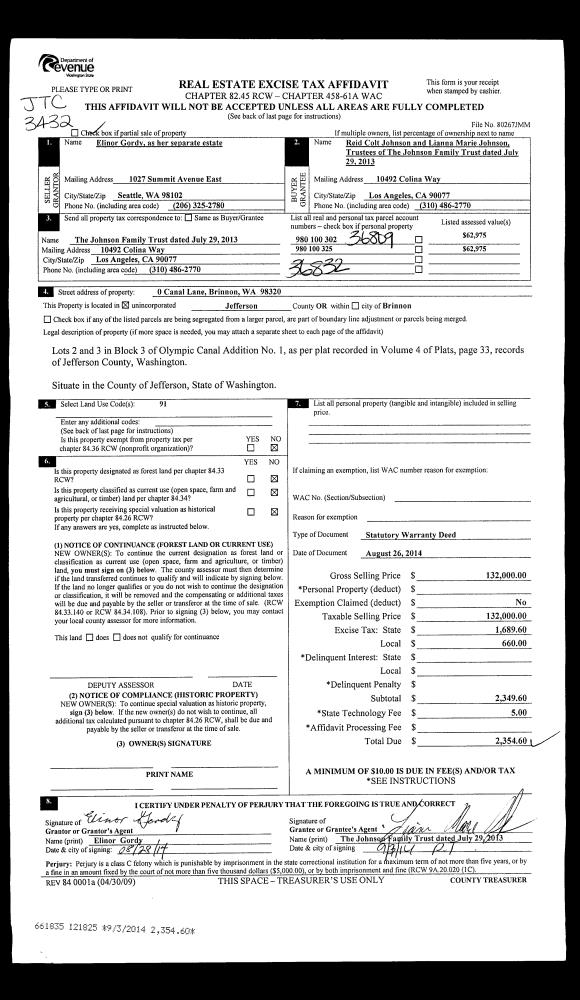| Mailing Address: | 2023 E SIMS WAY # 127 PORT TOWNSEND, WA 98368-6905 | % Ownership: | 100.0000000000% |