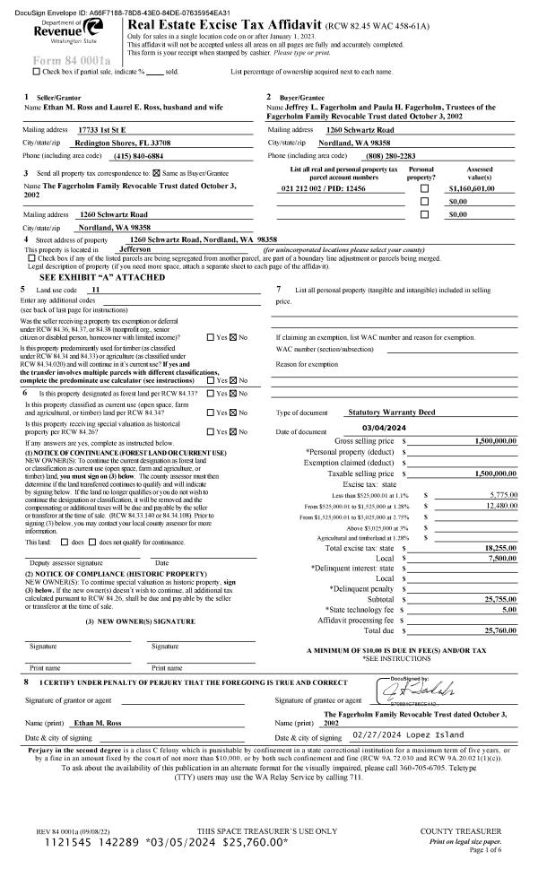 | Mailing Address: | RUTH A & NICOLE R ASKEVOLD TRUSTEES 74 SILVER BERRY PL PORT TOWNSEND, WA 98368-7302 | % Ownership: | 100.0000000000% |