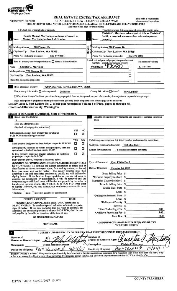 | Mailing Address: | VICKI LYNN DUNLAP 3801 HASTINGS AVE W PORT TOWNSEND, WA 98368-9642 | % Ownership: | 100.0000000000% |