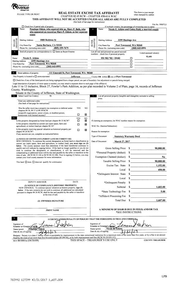 | 1 | 07/28/2017 | QCD | Quit Claim Deed | SALLY LOVELL | SALLY LOVELL LIVING TRUST | | | | 128476 | |
