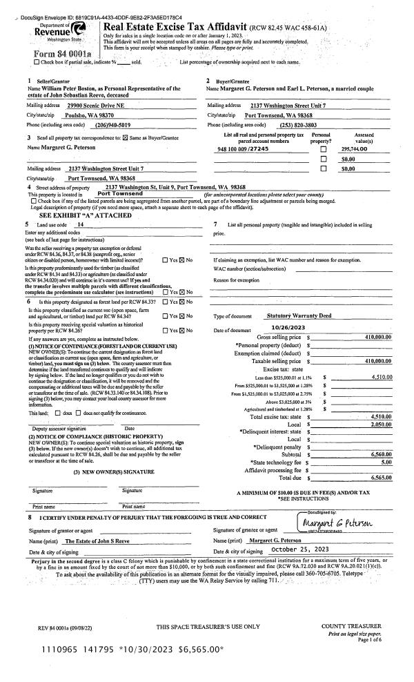 | Mailing Address: | 681 HIDDEN TRAIL RD PORT TOWNSEND, WA 98368-9000 | % Ownership: | 100.0000000000% |