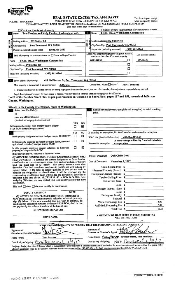 | Mailing Address: | 794 HIDDEN TRAIL RD PORT TOWNSEND, WA 98368-9001 | % Ownership: | 100.0000000000% |