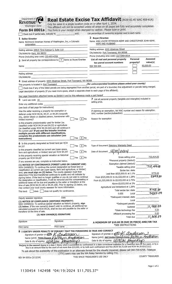 | Mailing Address: | PO BOX 1220 PORT TOWNSEND, WA 98368-0920 | % Ownership: | 100.0000000000% |