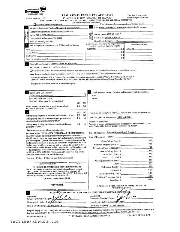 | 2 | 07/12/2018 | SWD | Statutory Warranty Deed | MICHAEL T HAYDEN | KENNETH & JANE KELLY | | | $199,500.00 | 130601 | |