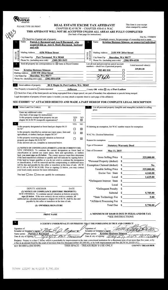| Mailing Address: | 1082 S JACOB MILLER RD PORT TOWNSEND, WA 98368-9654 | % Ownership: | 100.0000000000% |