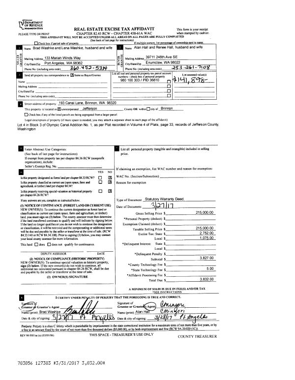 | 1 | 09/15/2017 | SWD | Statutory Warranty Deed | PT FIVE/PT FORTY/NELSON/DONOVN | NATEMBEA NORTHWEST LLC | | | $200,000.00 | 128658 | |