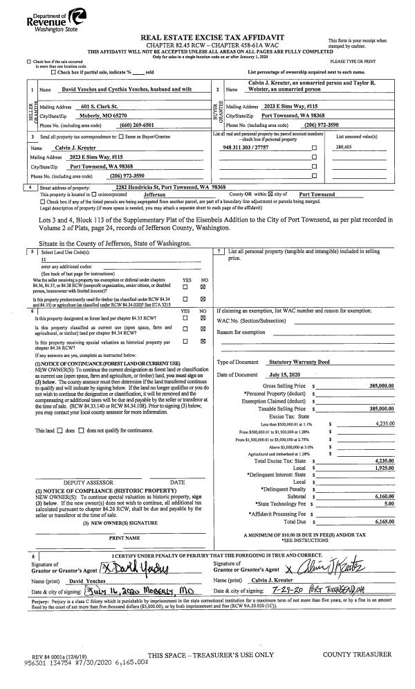 | 4 | 09/03/2003 | SWD | Statutory Warranty Deed | KOPLEN, SYLVIA/BOOK, SETH | EARL, DONALD ROBERT | 0 | 0 | $36,500.00 | 98216 | 0 |