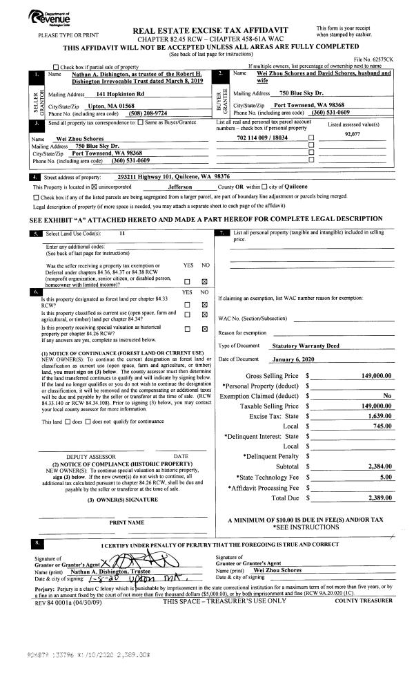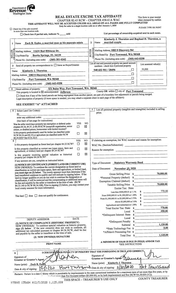 | 5 | 08/28/2003 | SWD | Statutory Warranty Deed | LOWE, RICHARD E/JEANNIE A | SLOPER, AVERY/MARIELLE M | 0 | 0 | $270,000.00 | 98170 | 0 |