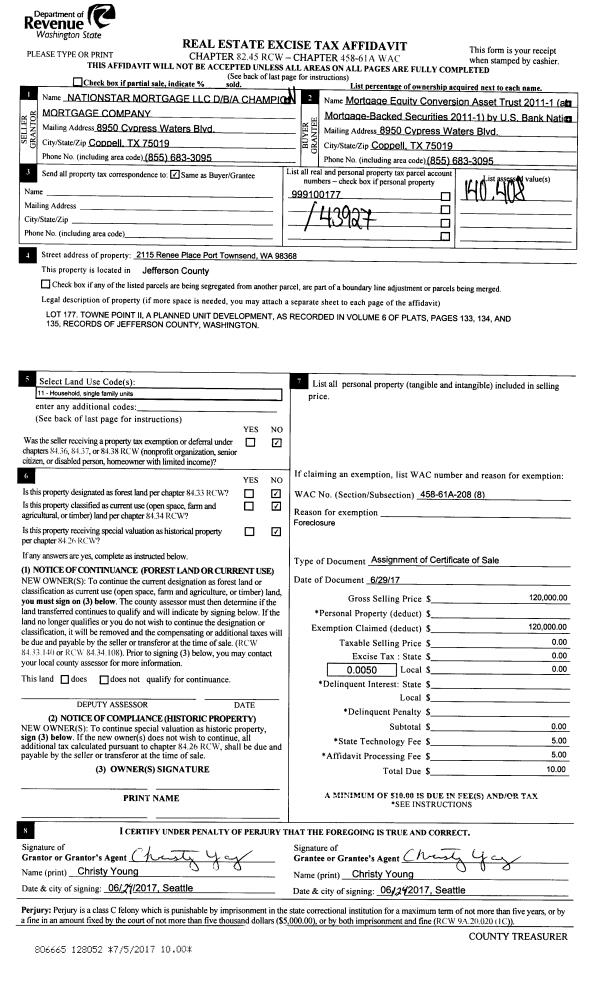 | Mailing Address: | 96 ARCADIA TERRACE PORT TOWNSEND, WA 98368 | % Ownership: | 100.0000000000% |