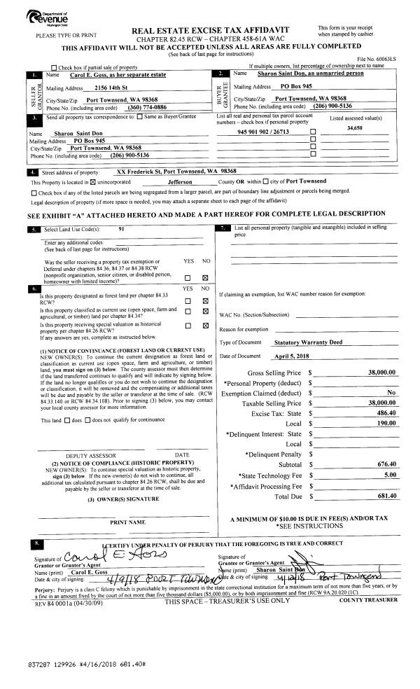 | 4 | 04/20/1994 | GIFT | Gift Deed | SUDLOW, CHRISTOPHER J | DALZELL, GRAIG | 0 | 0 | $0.00 | 73931 | 0 |