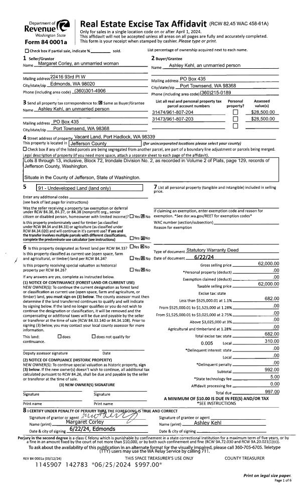 | 4 | 04/06/1994 | SWD | Statutory Warranty Deed | CONLEY, LEONARD W/JO ELLE | RATCHFORD, JOHN D/EILEEN G | 0 | 0 | $13,500.00 | 73809 | 0 |