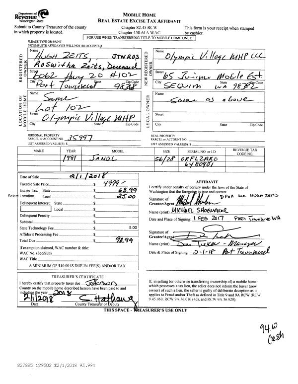 | Mailing Address: | MARGARET H DAY 325 COUGAR RIDGE RD PORT TOWNSEND, WA 98368 | % Ownership: | 100.0000000000% |