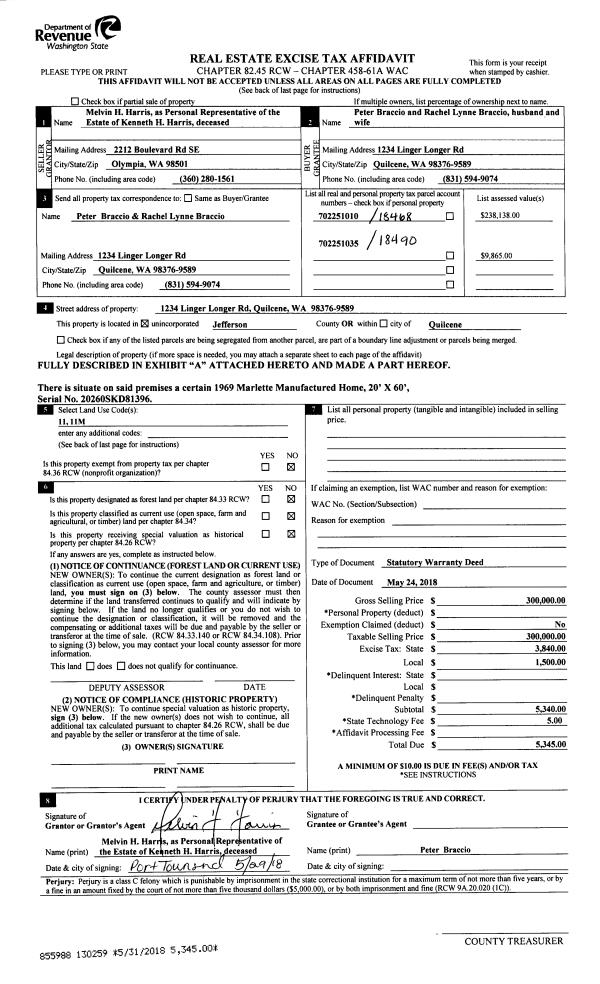 | 6 | 08/07/2001 | SWD | Statutory Warranty Deed | MAGILL, BETTY J PR ESTATE | GAUGER, MYRON W, DWYER, KATHLE | 0 | 0 | $45,000.00 | 92809 | 0 |