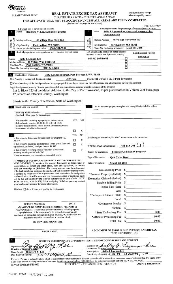 | Mailing Address: | 164 COUGAR RIDGE RD PORT TOWNSEND, WA 98368-9247 | % Ownership: | 100.0000000000% |