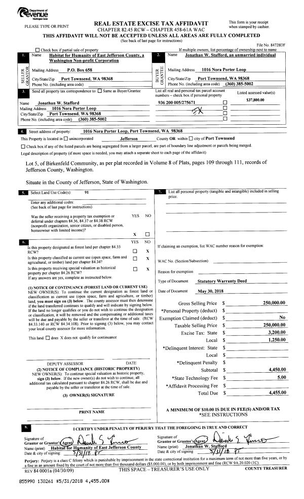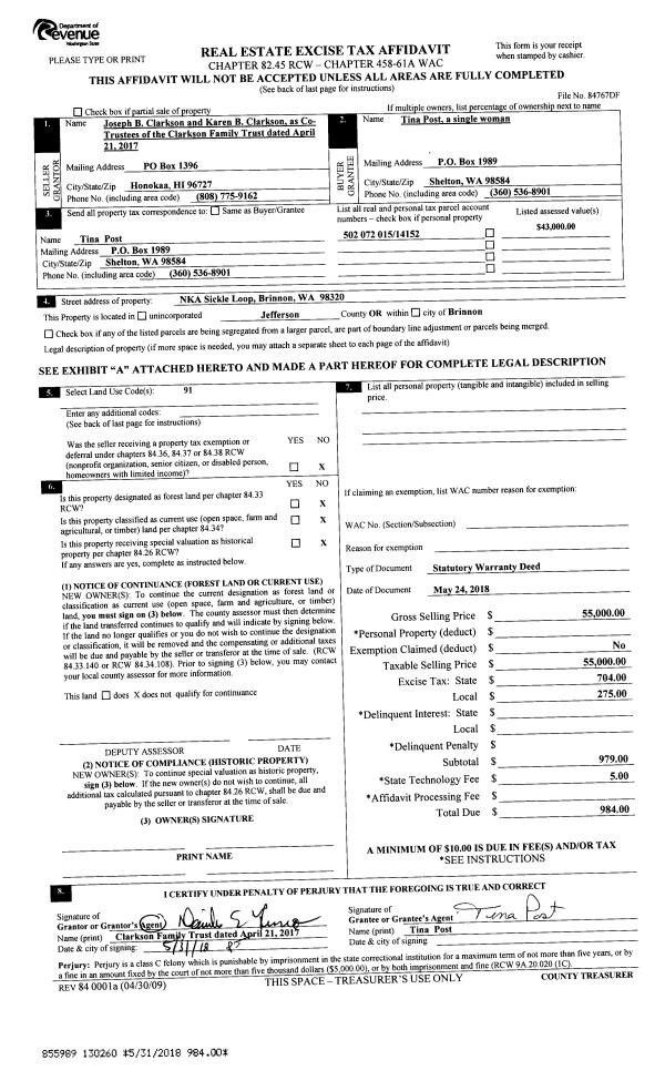 | 5 | 11/28/1994 | SWD | Statutory Warranty Deed | MARTS, JAN | LEAVITT, WILLIAM/DALE | 0 | 0 | $25,000.00 | 75658 | 0 |