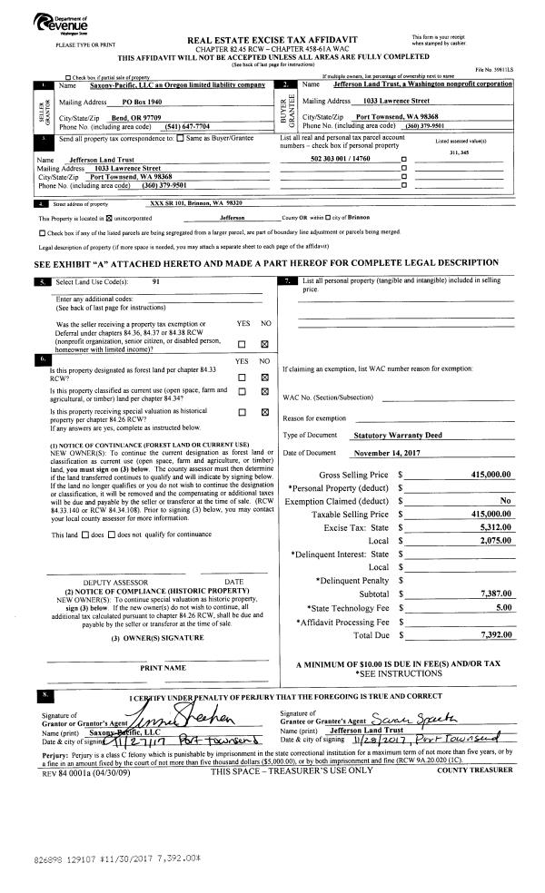 | 2 | 5335-1371S | | 1.0000 | 43560.00 | 0.00 | 0.00 | 1.00 | $96,250 | $0 |