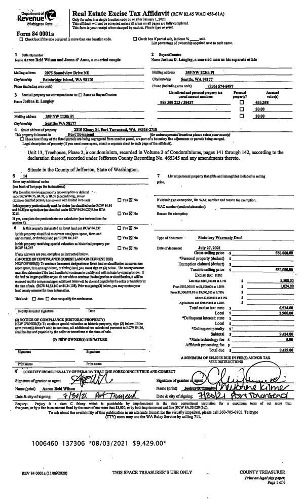 | Mailing Address: | DAVID W PRATT TRUSTEE AMY M HIATT TRUSTEE 234 SAND RD PORT TOWNSEND, WA 98368-9656 | % Ownership: | 100.0000000000% |