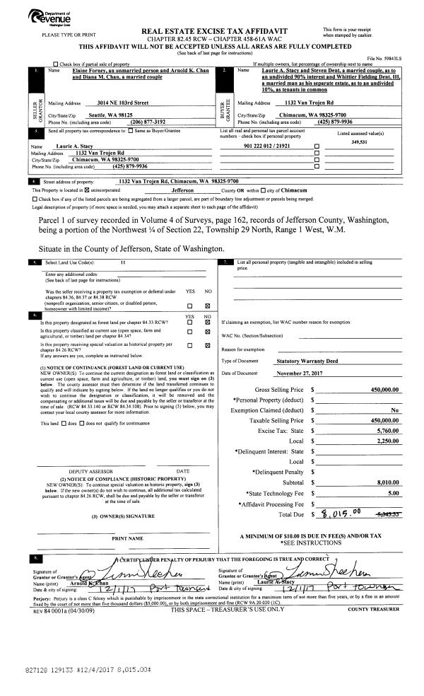 | Mailing Address: | 292 BLUE SKY DR PORT TOWNSEND, WA 98368 | % Ownership: | 100.0000000000% |
