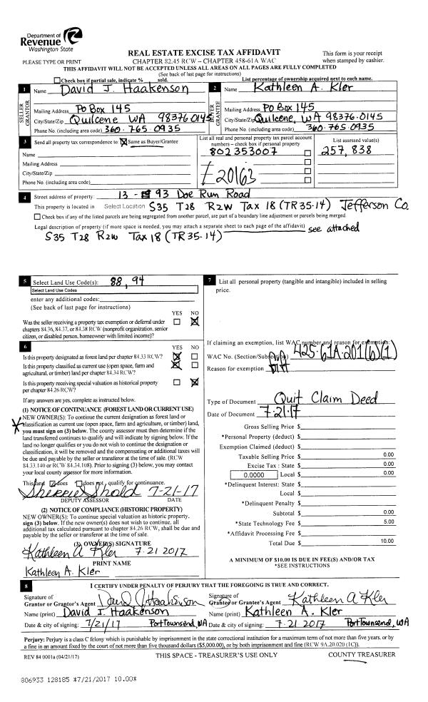 | Mailing Address: | 954 DISCOVERY RIDGE RD PORT TOWNSEND, WA 98368-8809 | % Ownership: | 100.0000000000% |