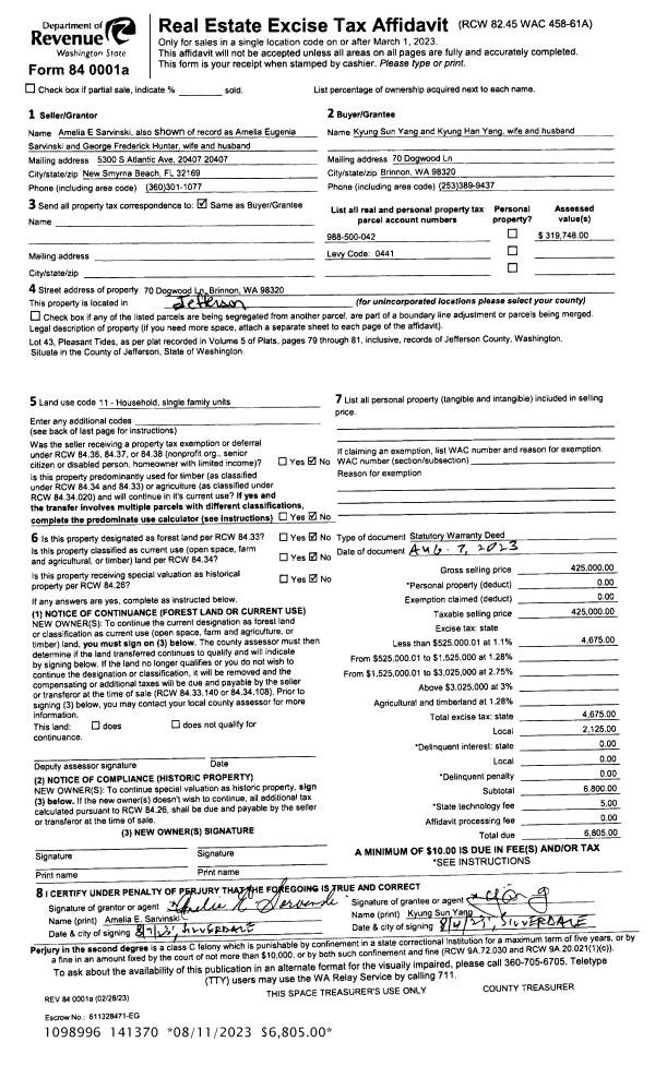 | Mailing Address: | SANDRA I ARNOLD 1093 DISCOVERY RIDGE RD PORT TOWNSEND, WA 98368-8801 | % Ownership: | 100.0000000000% |