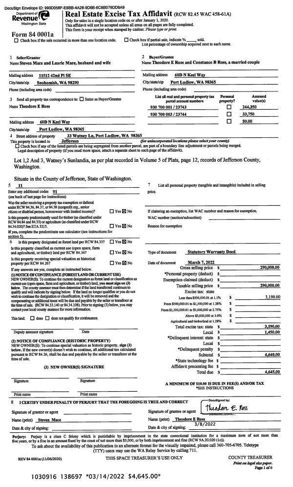 | Mailing Address: | RANDI B BLOSSOM TRUSTEE DONNA L BLOSSOM TRUSTEE 603 BLOSSOM LN PORT TOWNSEND, WA 98368-9609 | % Ownership: | 100.0000000000% |