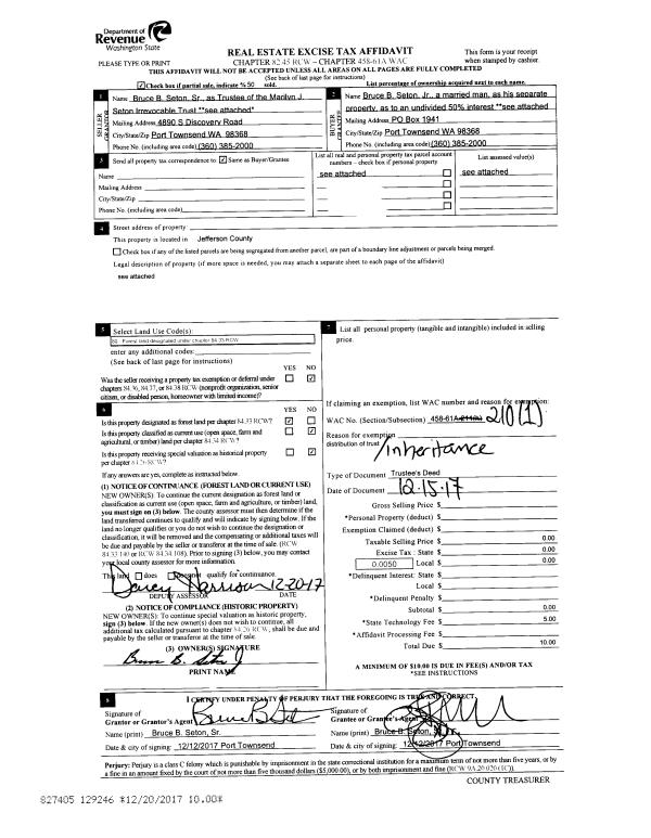 | Mailing Address: | 1861 S DISCOVERY RD PORT TOWNSEND, WA 98368-9290 | % Ownership: | 100.0000000000% |