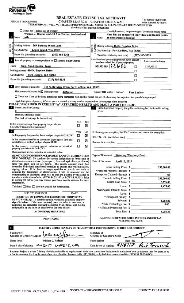 | 5 | 10/10/1997 | SWD | Statutory Warranty Deed | MOE, HAROLD/MARIANNE | DAHLQUIST, STEVE/JENNY | 0 | 0 | $40,000.00 | 82956 | 0 |