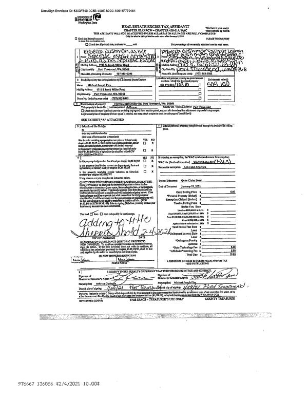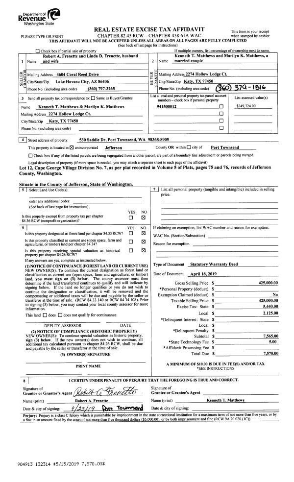 | Mailing Address: | 606 E PARK AVE PORT TOWNSEND, WA 98368-2267 | % Ownership: | 100.0000000000% |