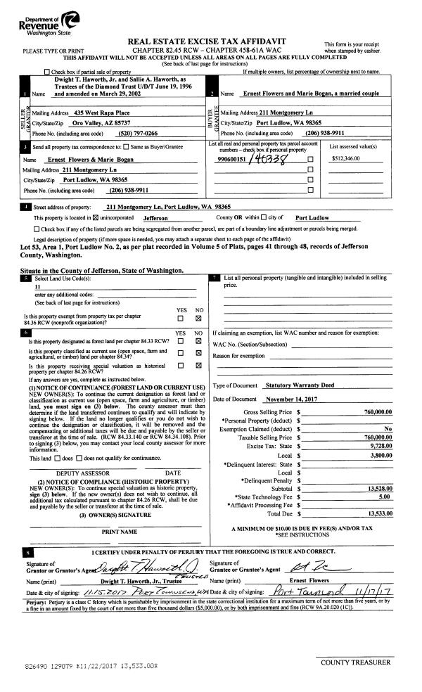 | Mailing Address: | 20 SEAVIEW CT #1 PORT TOWNSEND, WA 98368-9508 | % Ownership: | 100.0000000000% |