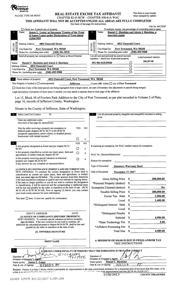 | Mailing Address: | TANIS L AREY 572 WOODLAND DR PORT TOWNSEND, WA 98368-2519 | % Ownership: | 100.0000000000% |