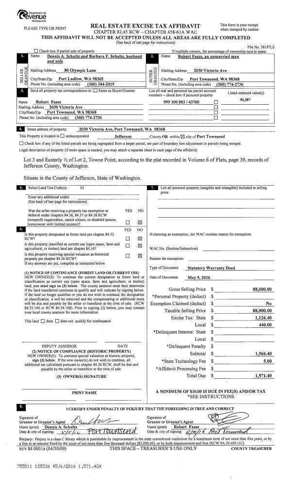 | Mailing Address: | JEANNETTE M LYNN 455 WOODLAND DR PORT TOWNSEND, WA 98368-2518 | % Ownership: | 100.0000000000% |