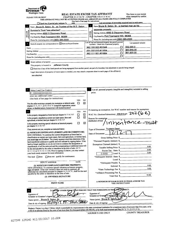 | Mailing Address: | CLAIRE M CHAMBERS 1221 WOODLAND DR PORT TOWNSEND, WA 98368-2551 | % Ownership: | 100.0000000000% |