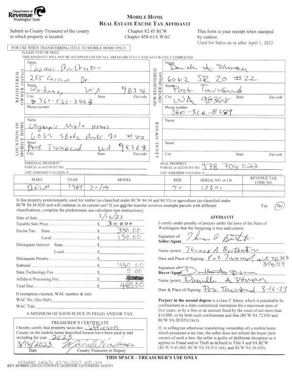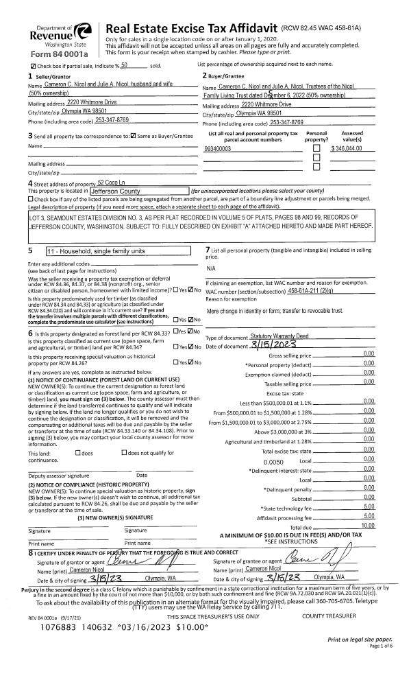 | 1 | 09/28/2023 | SWD | Statutory Warranty Deed | COLLEEN A WILLIAMS | STEWART WILSON | | | $250,000.00 | 141624 | |