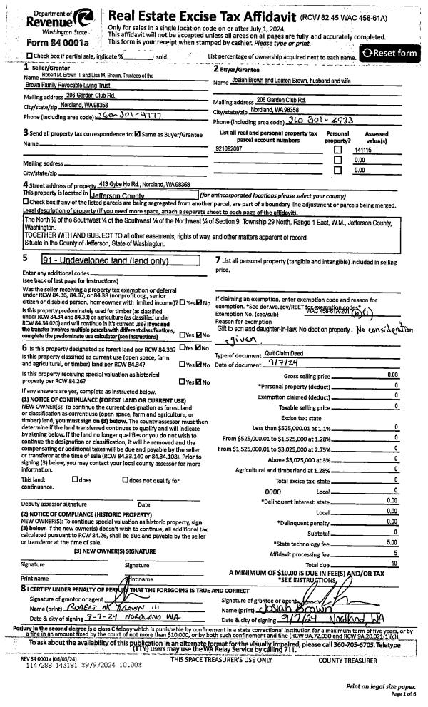 | 6 | 03/04/2005 | QCD | Quit Claim Deed | PORT TOWNSEND CHURCH OF T | WA PACIFIC DISTRICT ADVISORY | | | $0.00 | 103417 | 0 |