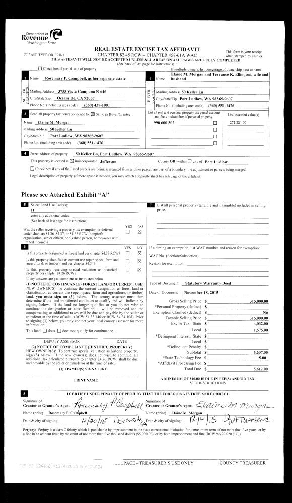 | Mailing Address: | 46 QUAIL RIDGE CT PORT TOWNSEND, WA 98368-2824 | % Ownership: | 100.0000000000% |