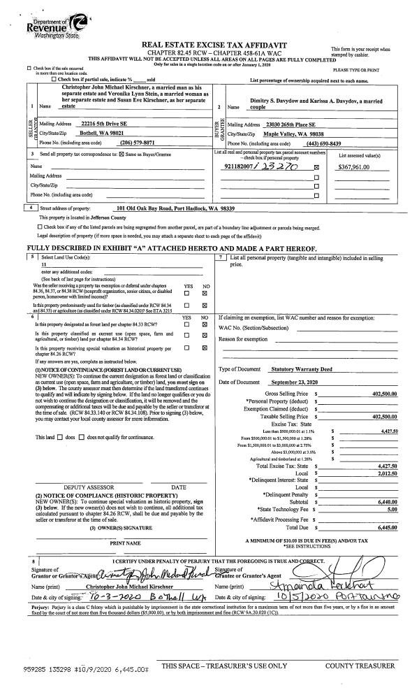 | Mailing Address: | 326 THOMAS ST PORT TOWNSEND, WA 98368-2214 | % Ownership: | 100.0000000000% |